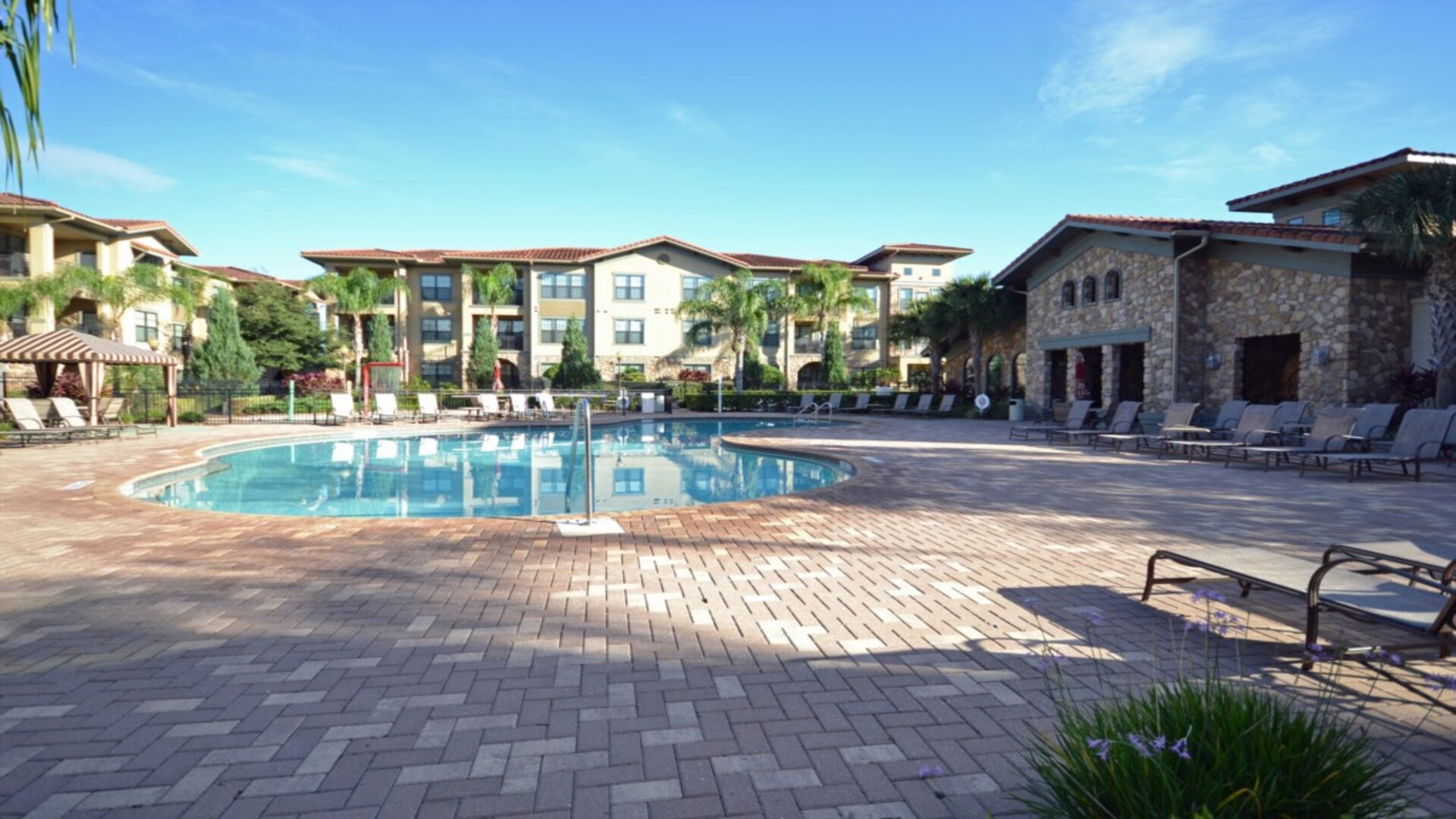 A taste of the Mediterranean with Floridian hospitality can best describe Bella Piazza. Bella pizza is a luxury Mediterranean style condo community in the heart of Davenport Florida and is less than 15 minutes from all the family attractions Orlando has to offer. Each unit in this community is approximately 1600 square feet and can sleep up to 10 people. This newer construction completed in 2008 allows every unit to have either a balcony or patio for private use. The modern clubhouse includes a games room, a business center, and a modern fitness center equipped with the latest cardio and strength building equipment. Bella Piazza also offers its guests two resort-style pools a hot tub outdoor kitchen and barbecue grills for your enjoyment. With a separate children's water playground and a lush tropical landscaping, every detail has been thought of to create the perfect Florida vacation for couples or families.