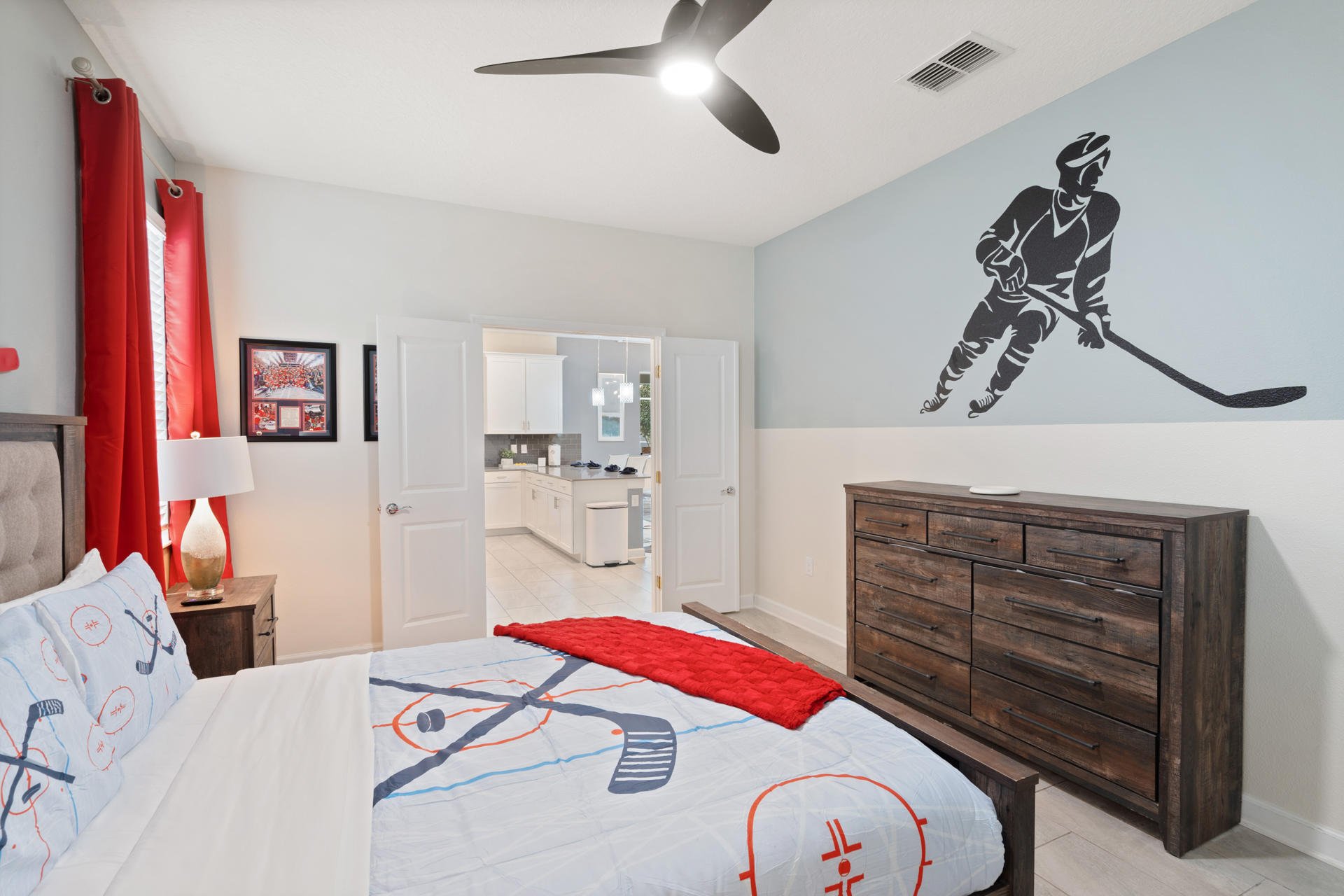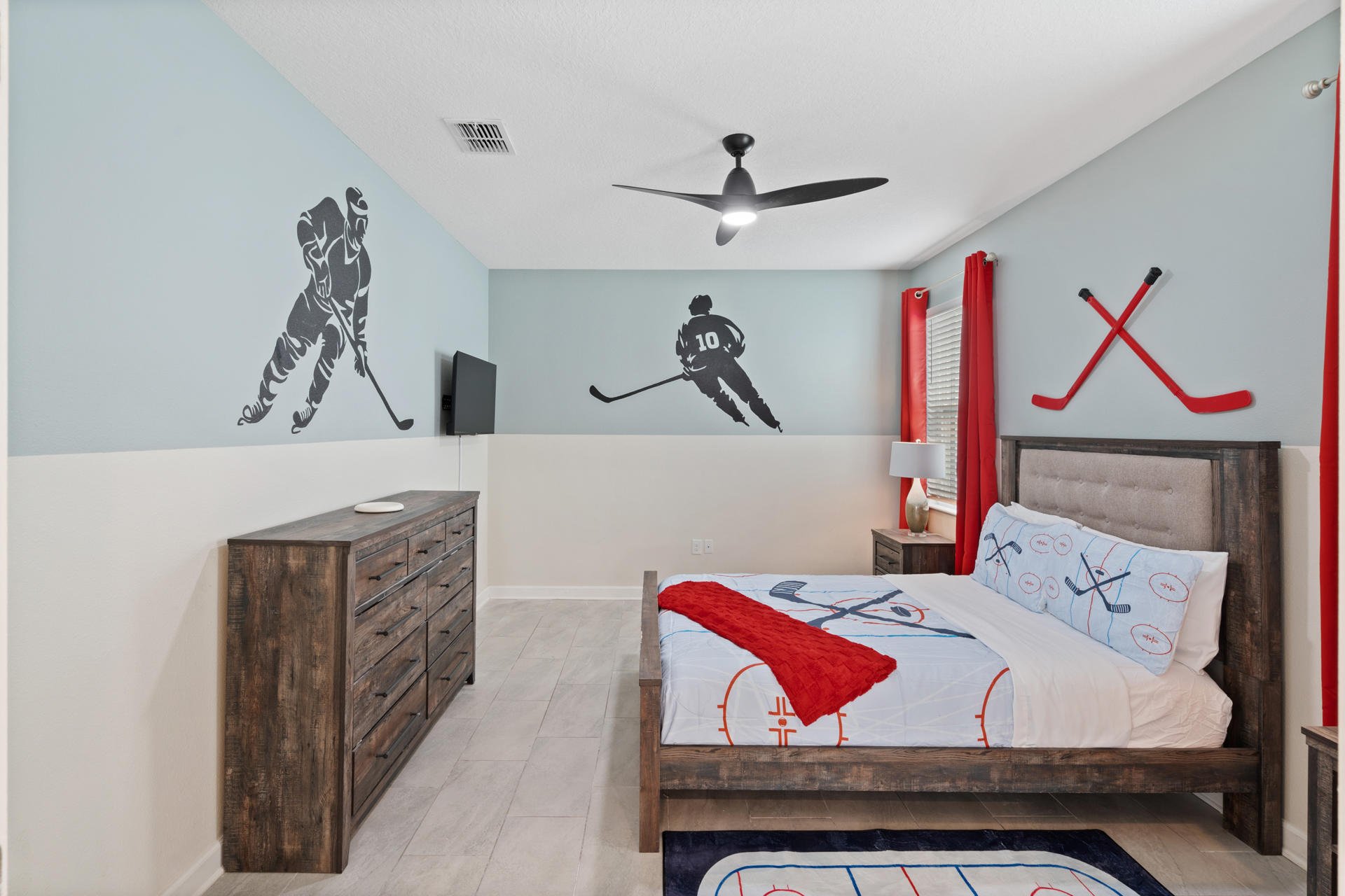 - Bedroom 7 - One Queen Bed / Shared Bathroom / Hockey Theme / 43" Smart TV