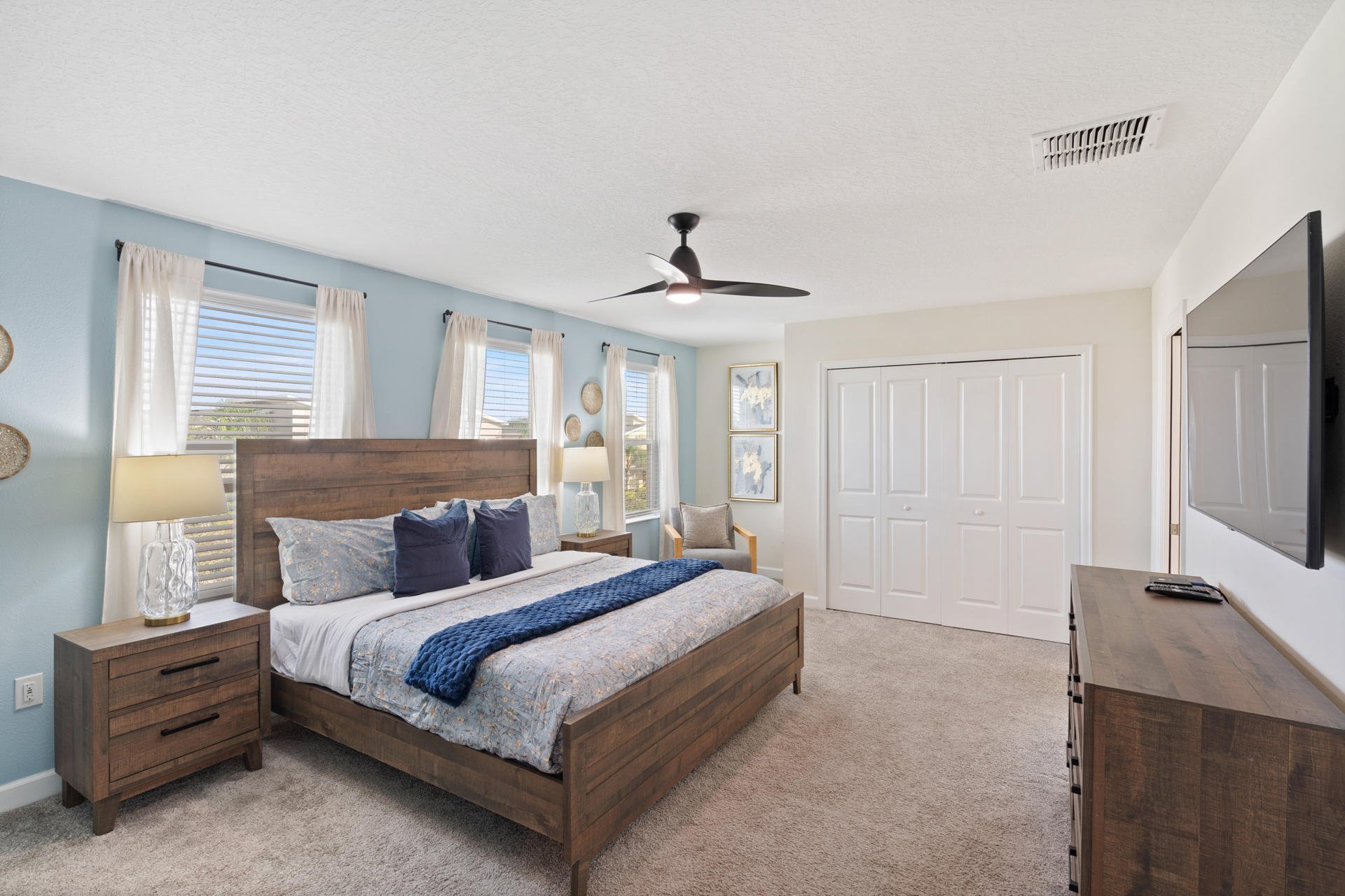 - Bedroom 1 - One King Bed / Attached Bathroom / 55" Smart TV