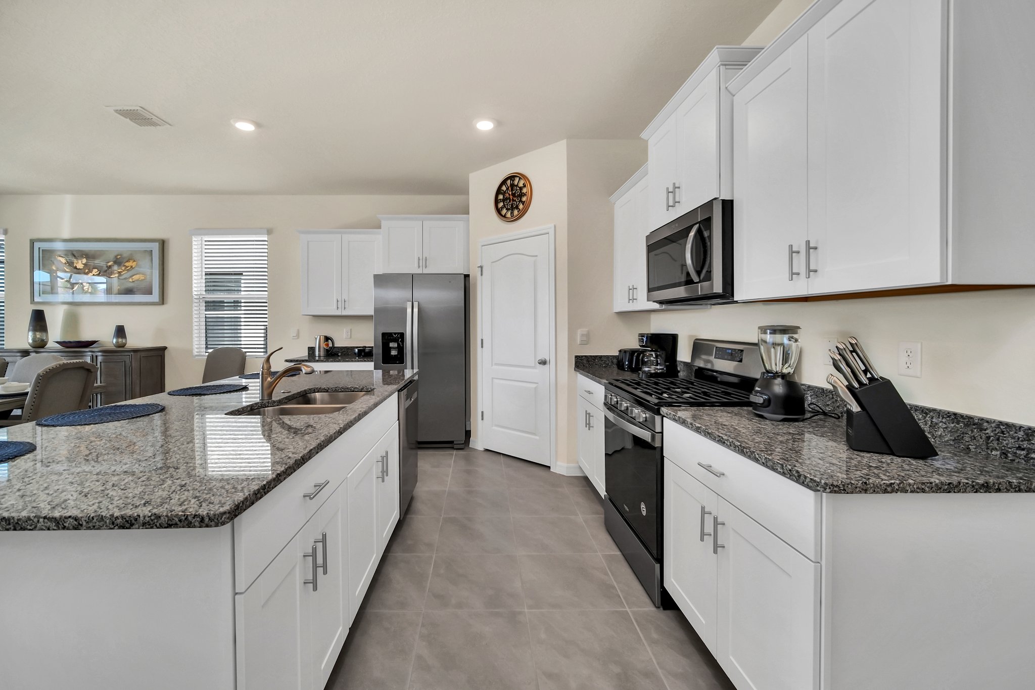 Fully Equipped Kitchen with Granite Countertops and Stainless Steel Appliances