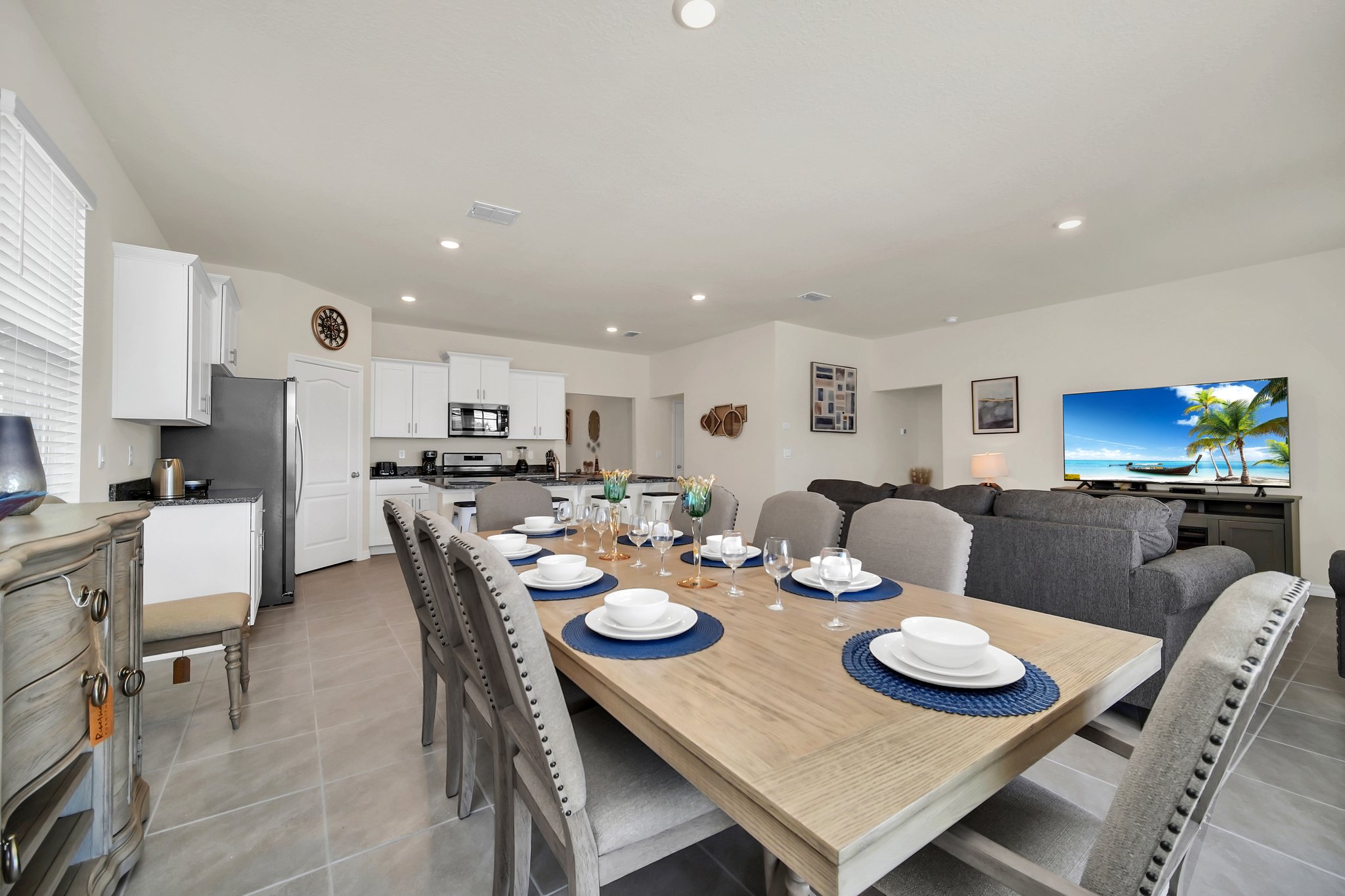 Beautiful house ! Great for a big family trip ! The resort was wonderful and had greats eats and drinks ! Big plus we didn’t even have to leave the resort for food service .