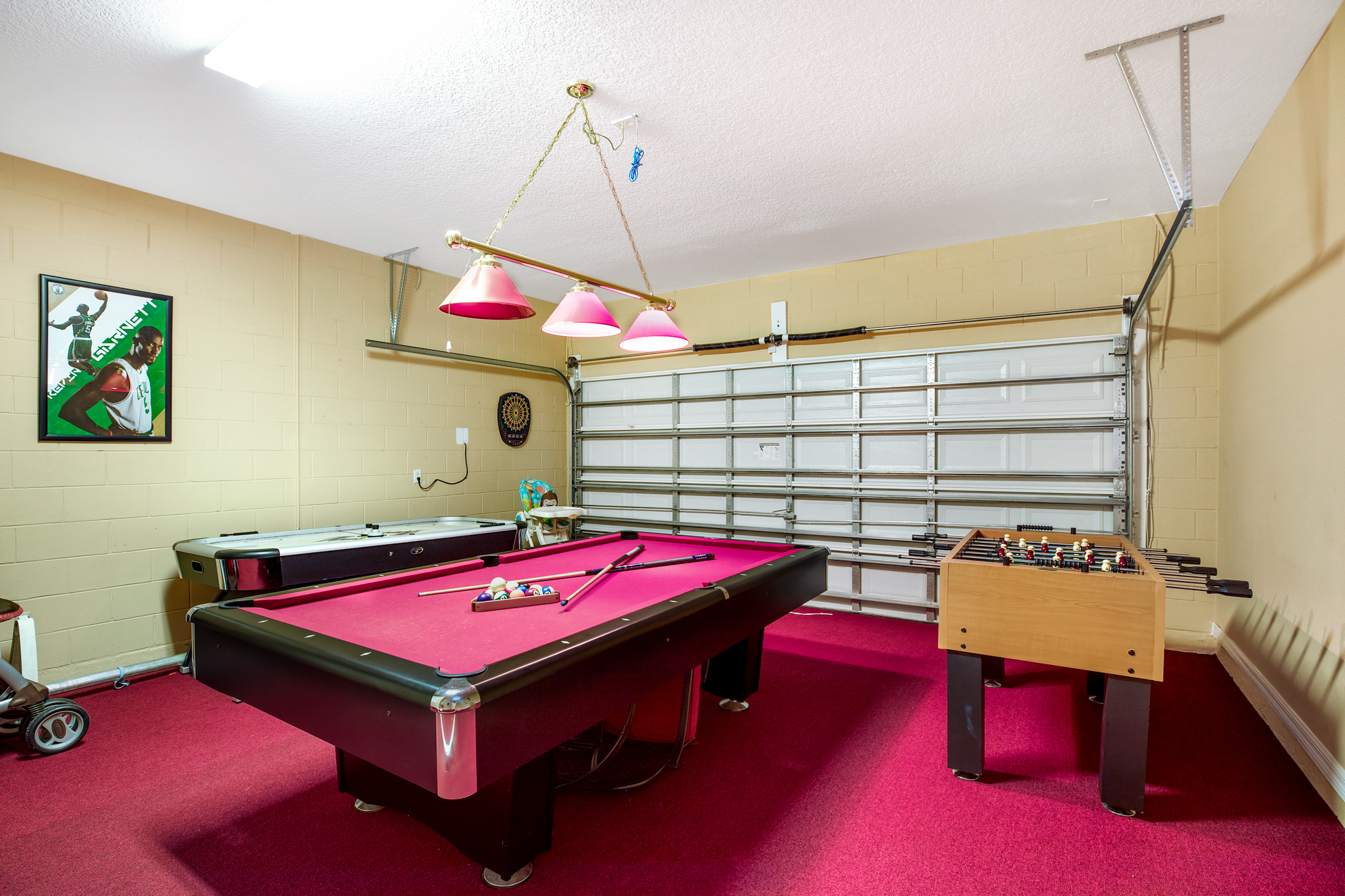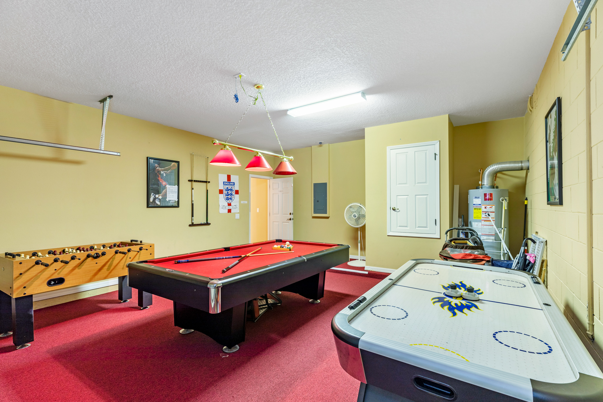 - Game Room with Pool Table, Air Hockey, and Foosball Table